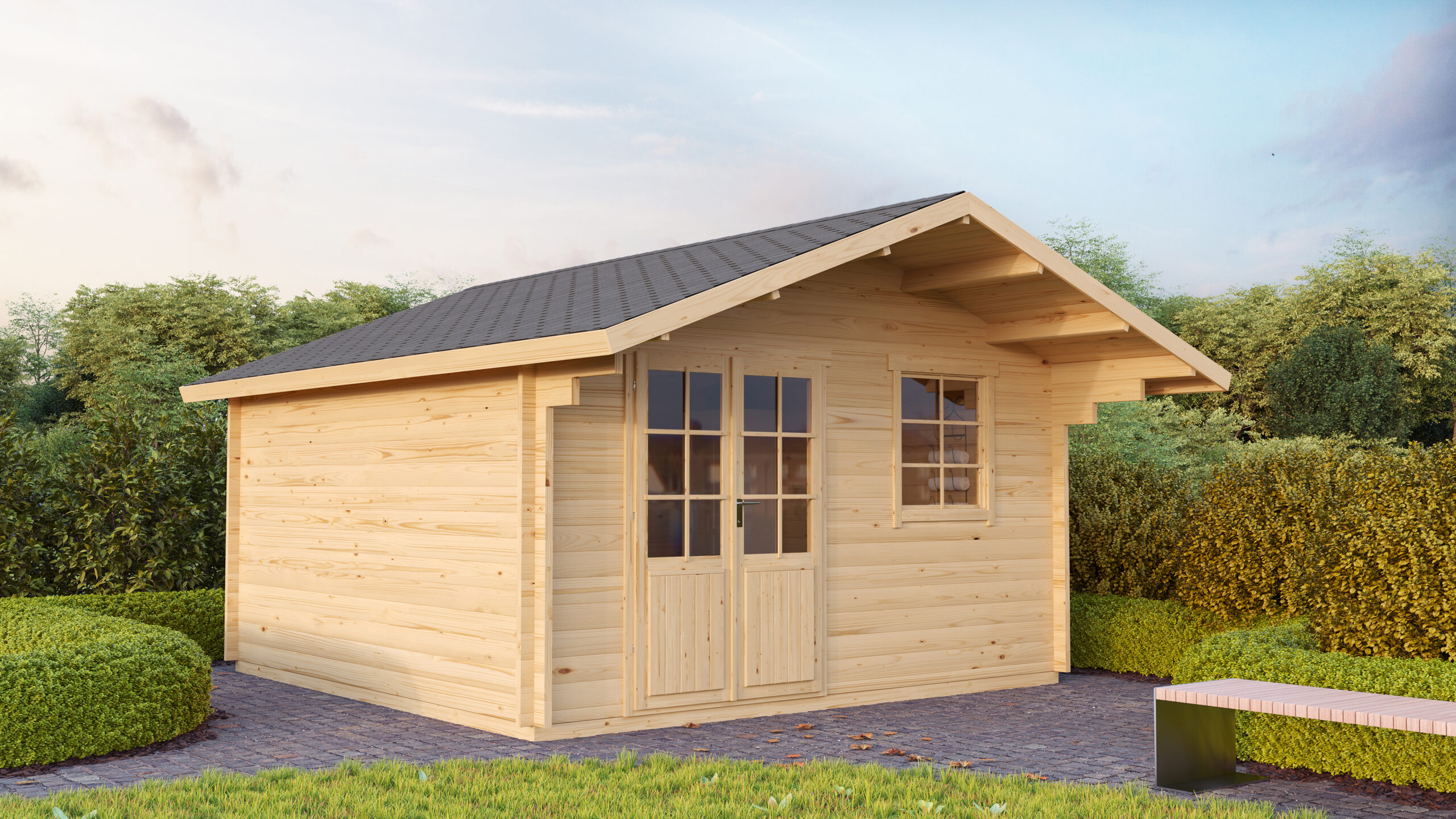 - lockable double door with insulated glazing, dimensions 1,300 x 1,900 (fully wood-covered door is optional)